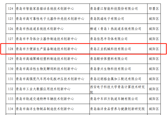 青島正亞機械入選青島市2021年度技術(shù)創(chuàng)新中心