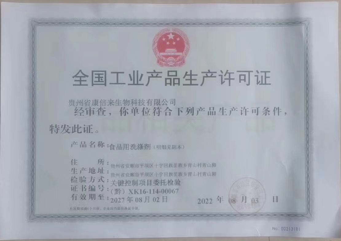 恭喜!富達(dá)日化用戶~貴州安順日化廠取得全國(guó)工業(yè)產(chǎn)品生產(chǎn)許可證