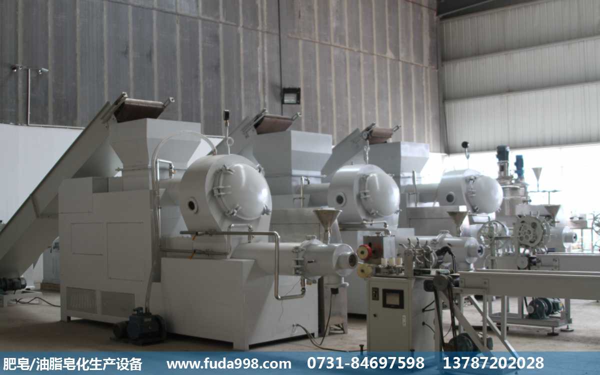 采用富達(dá)日化FZ-2000油脂皂化、肥皂成套生產(chǎn)設(shè)備,可以從獲取動(dòng)物油脂,通過(guò)油脂的皂化,生產(chǎn)皂基,皂基干燥后,加上配料,壓條,切塊,打印,包裝,最后制作成肥皂。