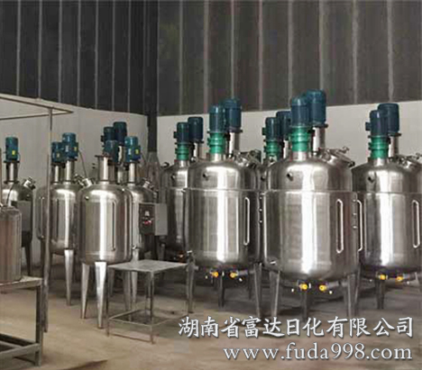 洗潔精生產(chǎn)設(shè)備需要實現(xiàn)自動化生產(chǎn),操作簡單,容易上手,減少人力成本的投入,1-2人即可操作。投資者可根據(jù)自已區(qū)域市場情況及自身財力選擇不同型號。洗潔精生產(chǎn)設(shè)備的結(jié)構(gòu)決定了洗潔精的質(zhì)量。目前市面上的洗潔精設(shè)備都是靠機(jī)械外力單純攪拌成型的設(shè)備。單純攪拌成型的缺點就是產(chǎn)品只是暫時分散,原材料達(dá)不到充分的分散和乳化,產(chǎn)品很容易產(chǎn)生分層、沉淀,變質(zhì)變臭的現(xiàn)象。目前正規(guī)廠家全部采用的是機(jī)械乳化工藝,電機(jī)帶動不銹鋼剪切乳化頭,可以把原料進(jìn)行充分乳化和溶解,做出的產(chǎn)品保質(zhì)期長,顏色均勻、統(tǒng)一,不會分層、沉淀,完全達(dá)到國家要求的保質(zhì)期限。富達(dá)日化洗液洗滌劑設(shè)備與傳統(tǒng)攪拌設(shè)備不同;設(shè)備上部有高速等離子剪切乳化和攪拌同步,設(shè)備下部有螺桿泵或離心乳化泵循環(huán)乳化和自動排料;比傳統(tǒng)攪拌機(jī)節(jié)省時間3倍以上,產(chǎn)品保質(zhì)期延長2倍以上,由于乳化好、產(chǎn)品濃度大、去污力更強(qiáng),同等成本下比傳統(tǒng)攪拌機(jī)生產(chǎn)的產(chǎn)品提高去污指數(shù)30%-40%。立白集團(tuán)、藍(lán)思科技等正規(guī)大廠也從本廠采購此類設(shè)備。