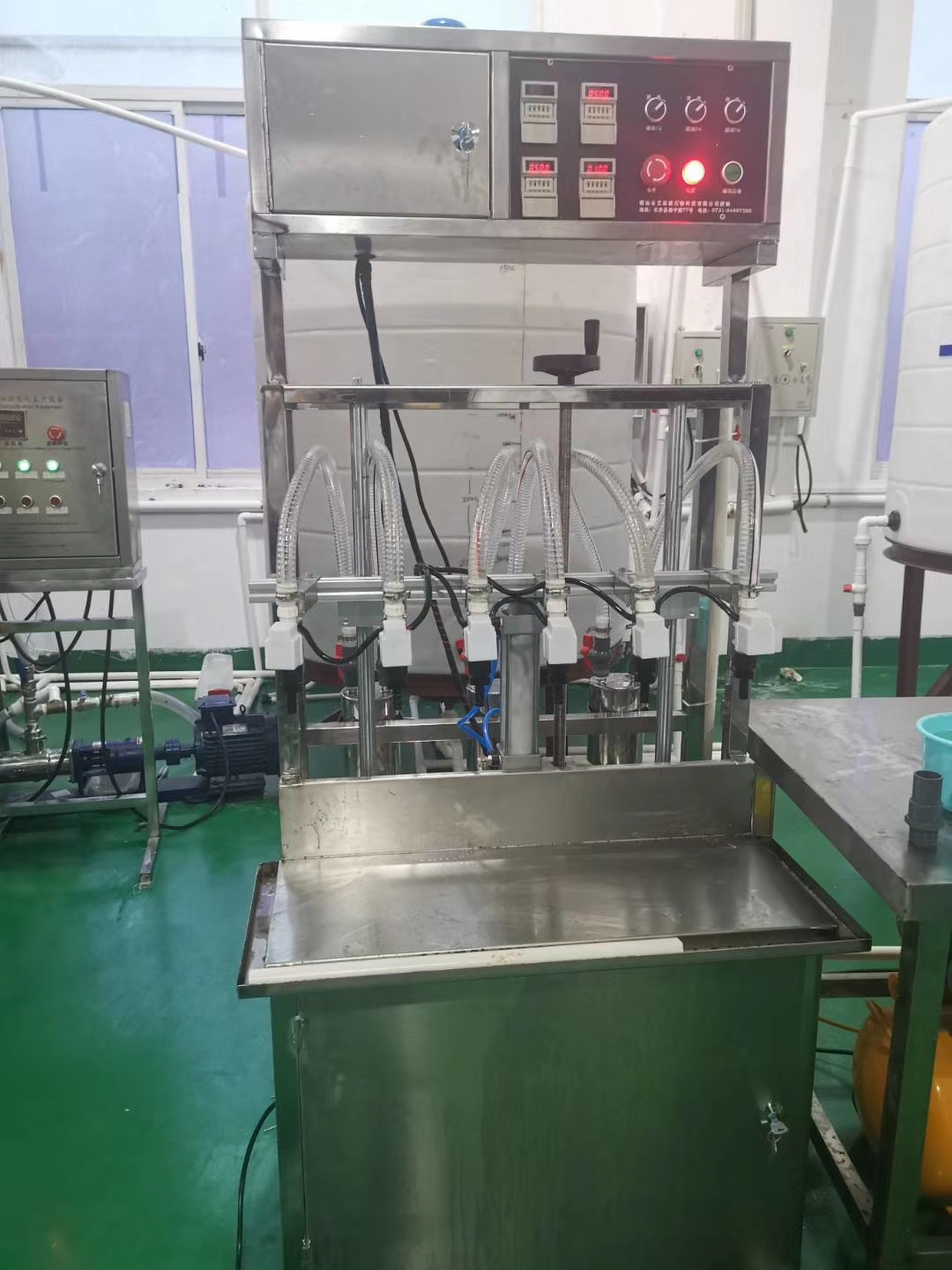 本液體灌裝機由湖南省富達(dá)日化有限公司研發(fā),灌裝量在300毫升-25公斤范圍內(nèi)均可自由調(diào)節(jié),克服了傳統(tǒng)灌裝機灌裝不同范圍內(nèi)產(chǎn)品需要多臺灌裝機的缺陷,設(shè)備接觸物料部分采用防腐材料制作,堅固耐用,操作簡便,適合于灌裝84消毒液、廁所清洗劑等具有腐蝕性的流動性液體和玻璃清洗劑、車用尿素、防凍液、精華液等瓶裝和桶裝產(chǎn)品。