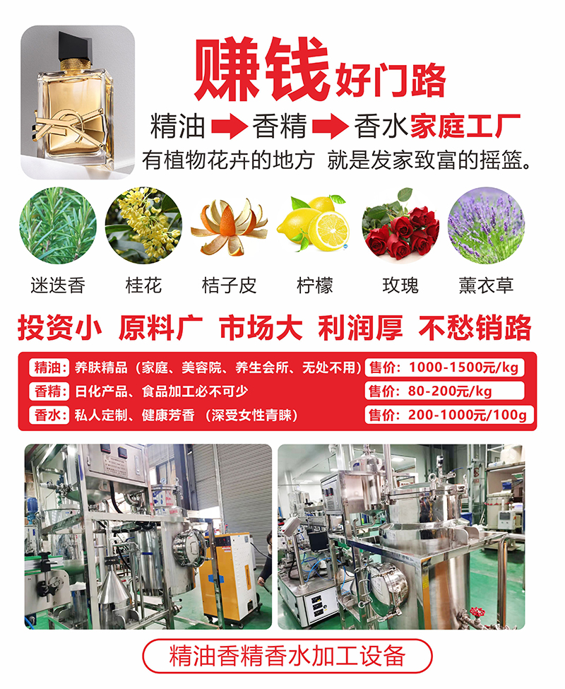 多項(xiàng)專利發(fā)明人王先軍 手機(jī):150-7483-5702 手機(jī):195-7316-0288設(shè)備投資五萬元以上即可生產(chǎn)。精油用于養(yǎng)生,美容院、足浴中心;香精用于食品行業(yè)、日化產(chǎn)品行業(yè);香水用于諸多追求品質(zhì)生活的男女消費(fèi)者的喜愛。合成精油香精香水的原料來源廣泛,主要是艾草、迷迭香、玫瑰等所有植物根桿或花卉,廠房占地面積20平方米以上,一人就可生產(chǎn),由于用途廣,市場不愁銷路。利潤空間大,投資風(fēng)險(xiǎn)小,適合大眾創(chuàng)業(yè)。
