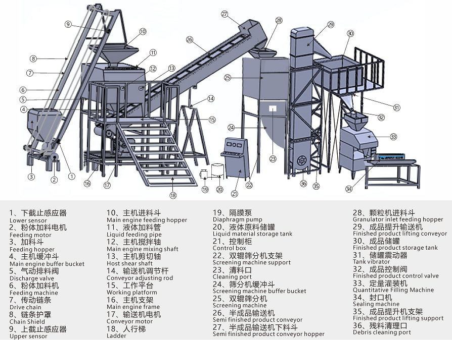 多功能,可以生產(chǎn)粉狀或者顆粒狀洗滌產(chǎn)品,如洗衣粉,去污粉,皂粉,漂白粉等 |