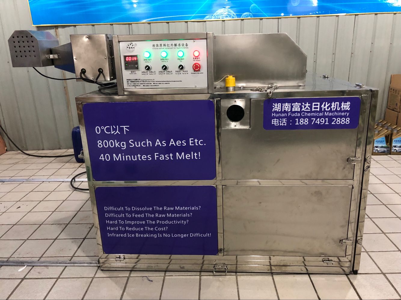 多項專利發(fā)明人王先軍 手機(jī):150-7483-5702 手機(jī):195-7316-0288AES等洗滌產(chǎn)品原料快速溶解有辦法,最近,由湖南省富達(dá)日化有限公司100多項國家專利申請人王先軍博士研發(fā)的一種紅外解凍設(shè)備,可以快速解決低溫狀態(tài)下化工原料冰凍后加料難、取料難的問題,廣泛用于洗滌產(chǎn)品生產(chǎn)需要。